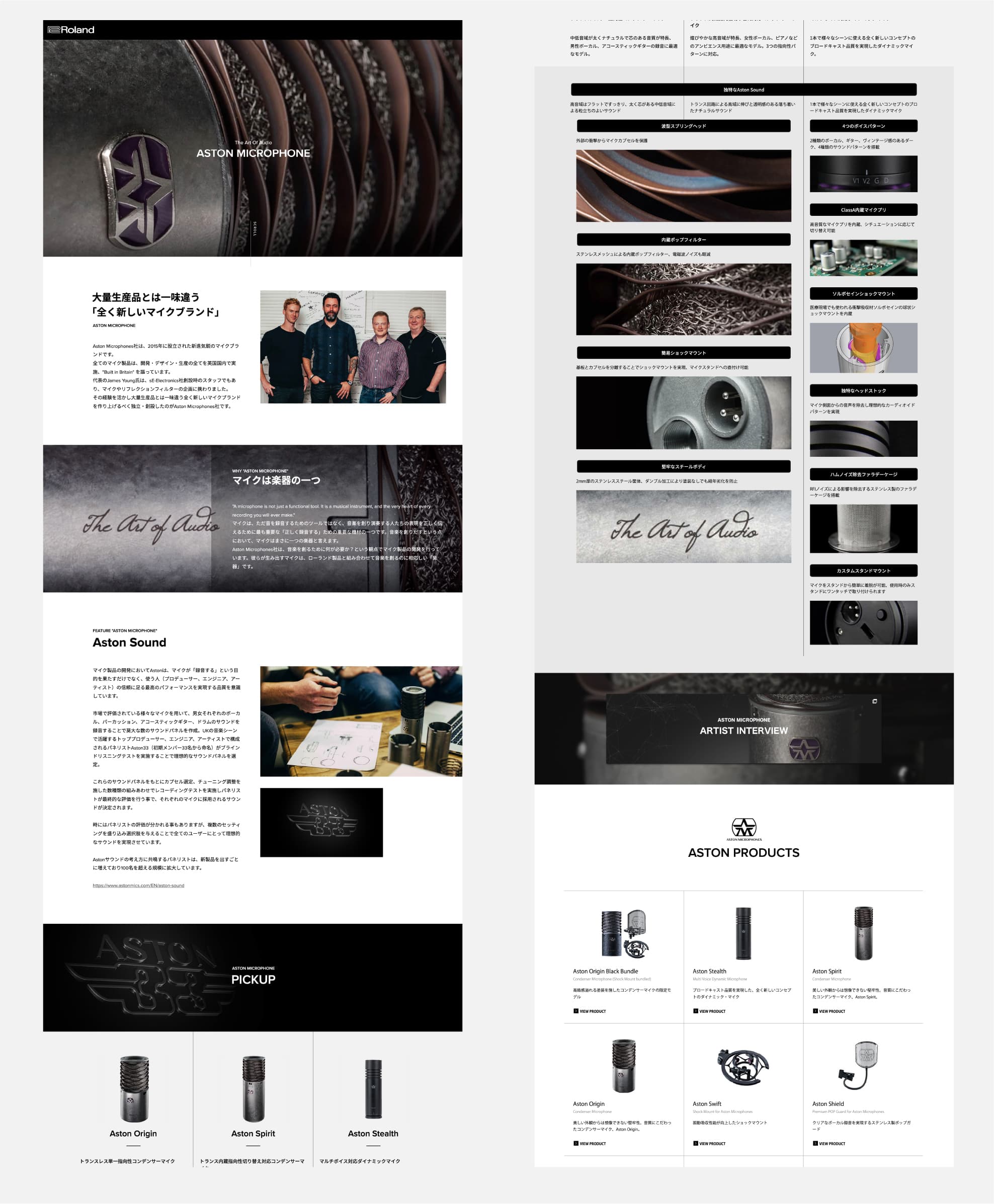 ASTON MICROPHONEのランディングページ制作を担当いたしました。Aston Microphones社は、2015年に設立された新進気鋭のマイクブランドです。