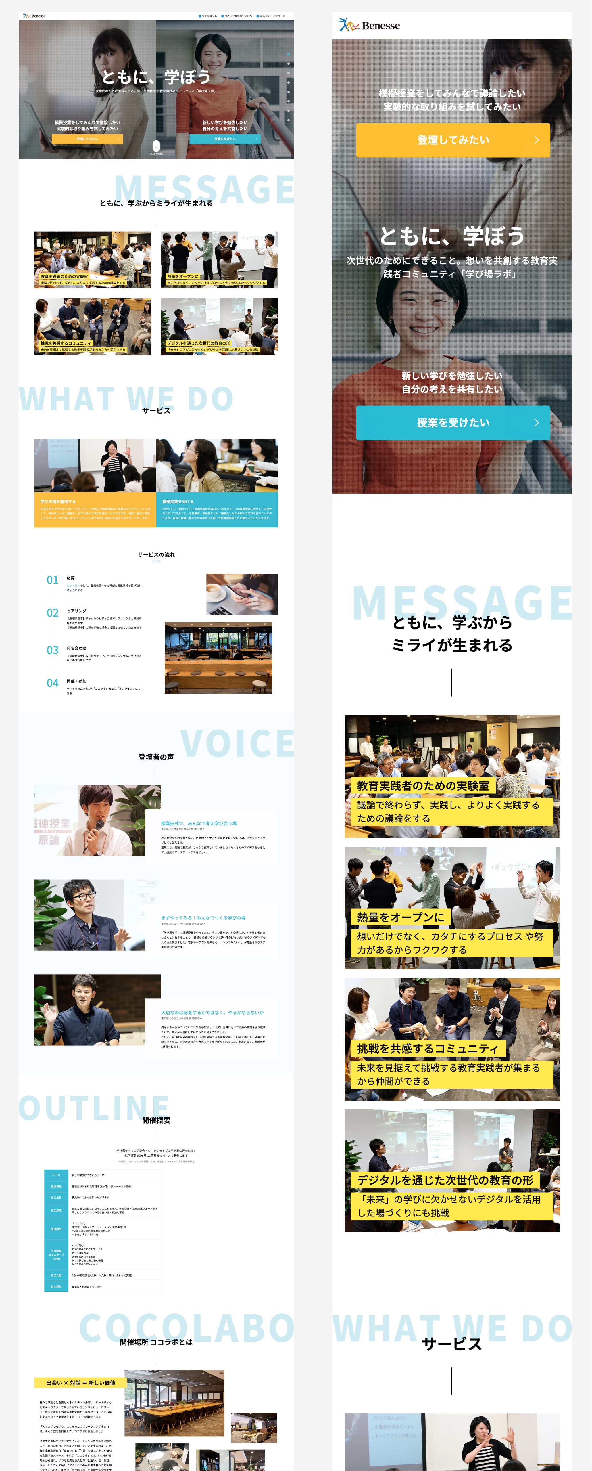 ベネッセ 学び場ラボ エントリーサイトのデザイン制作、WEB構築を担当いたしました。
