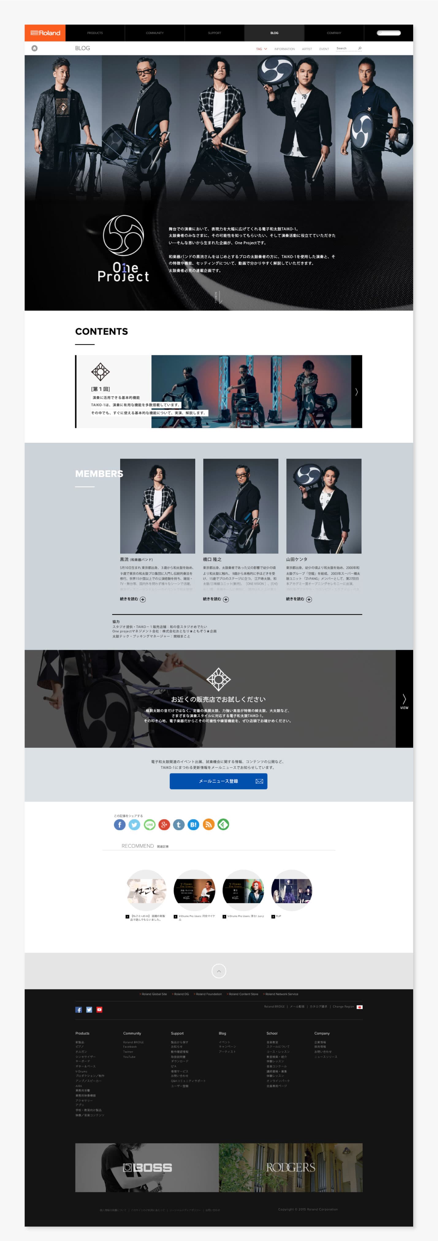 ローランドの電子和太鼓TAIKO-1の企画 [One Project] のWEBデザイン、構築を担当いたしました。舞台での演奏において、表現力を大幅に広げてくれる電子和太鼓TAIKO-1。